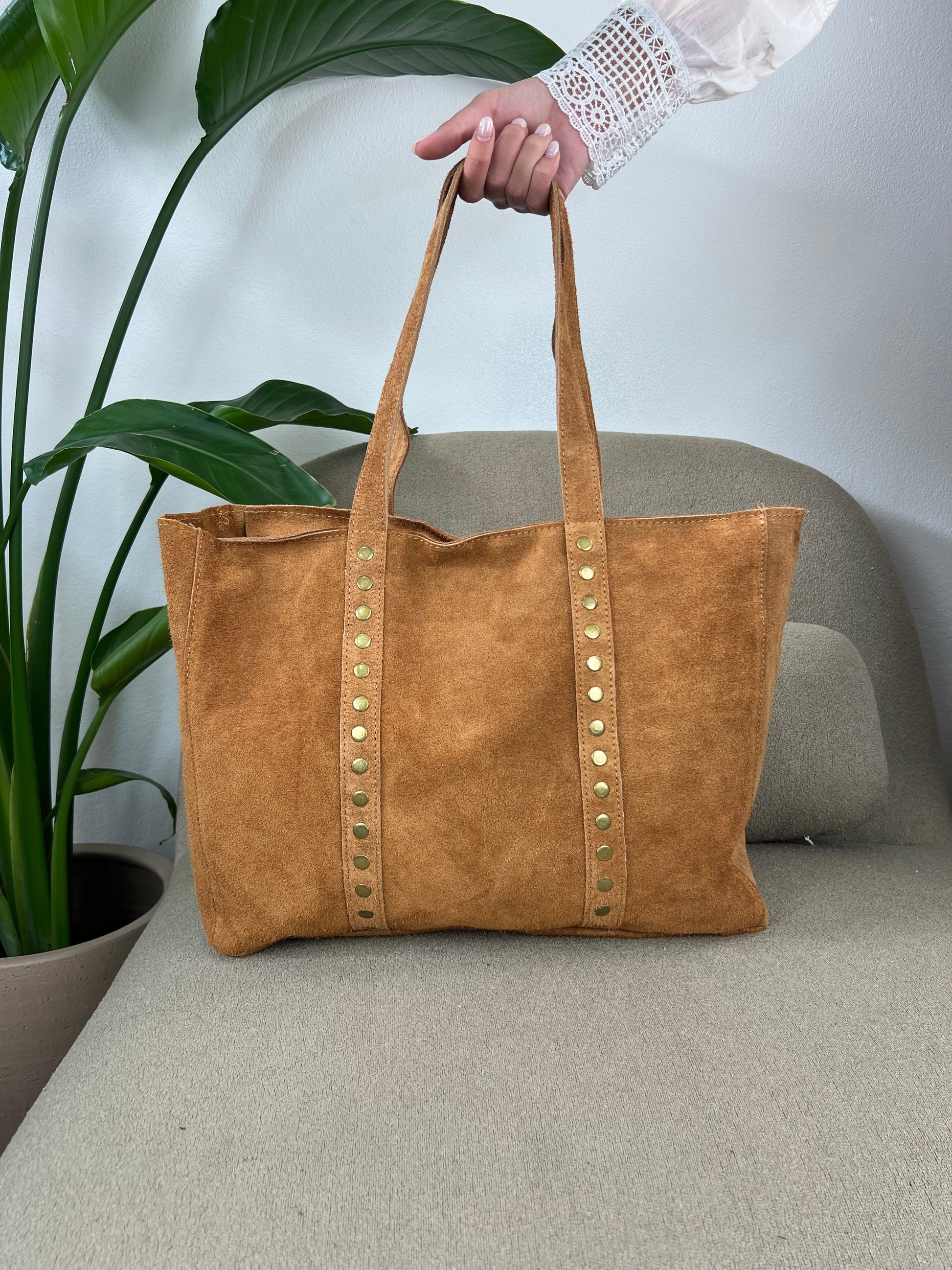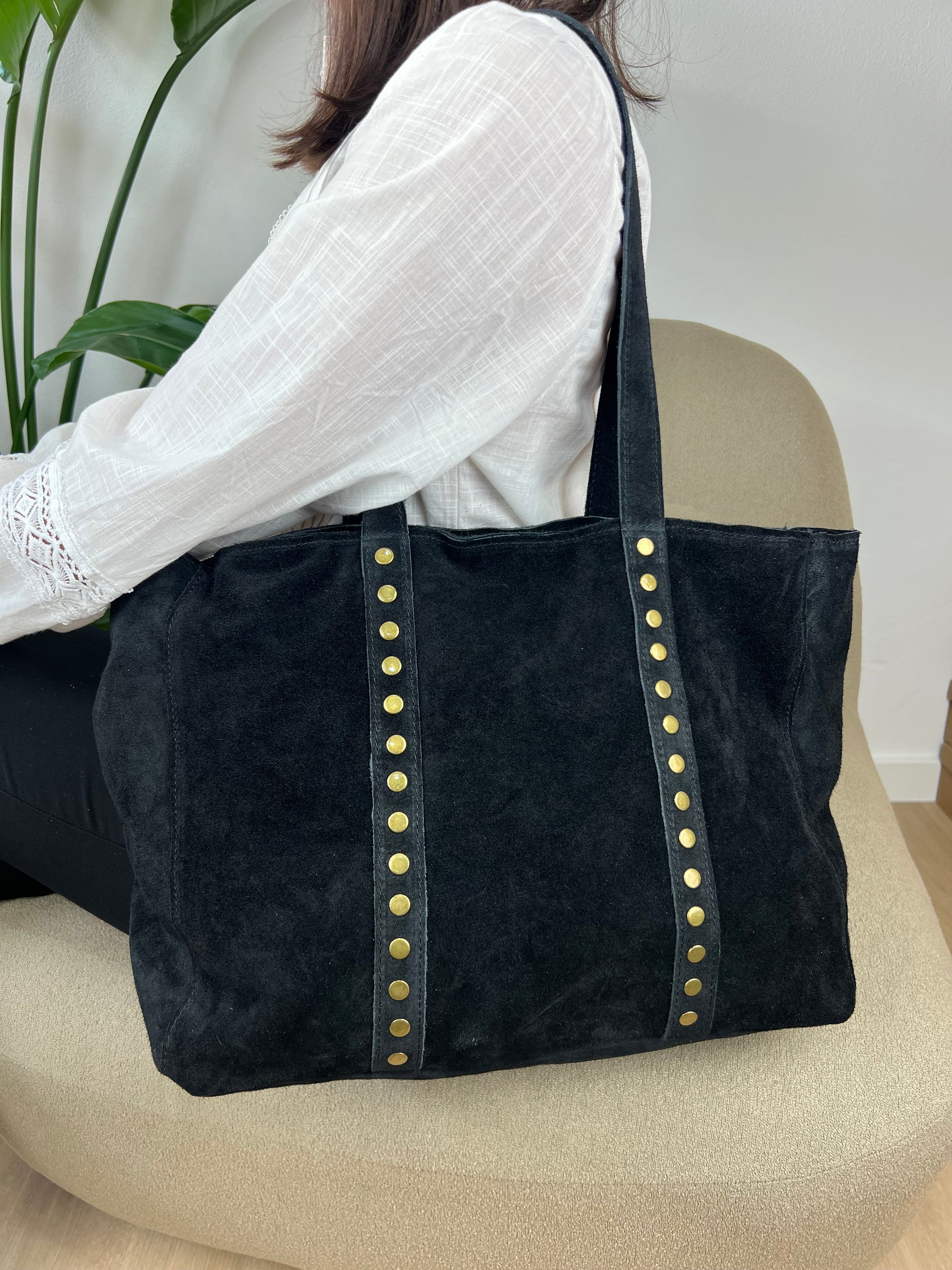 Mala de ombro em pele com tachas e fecho. Produzida em pele verdadeira. Disponível em 3 cores. Modelo espaçoso e resistente.