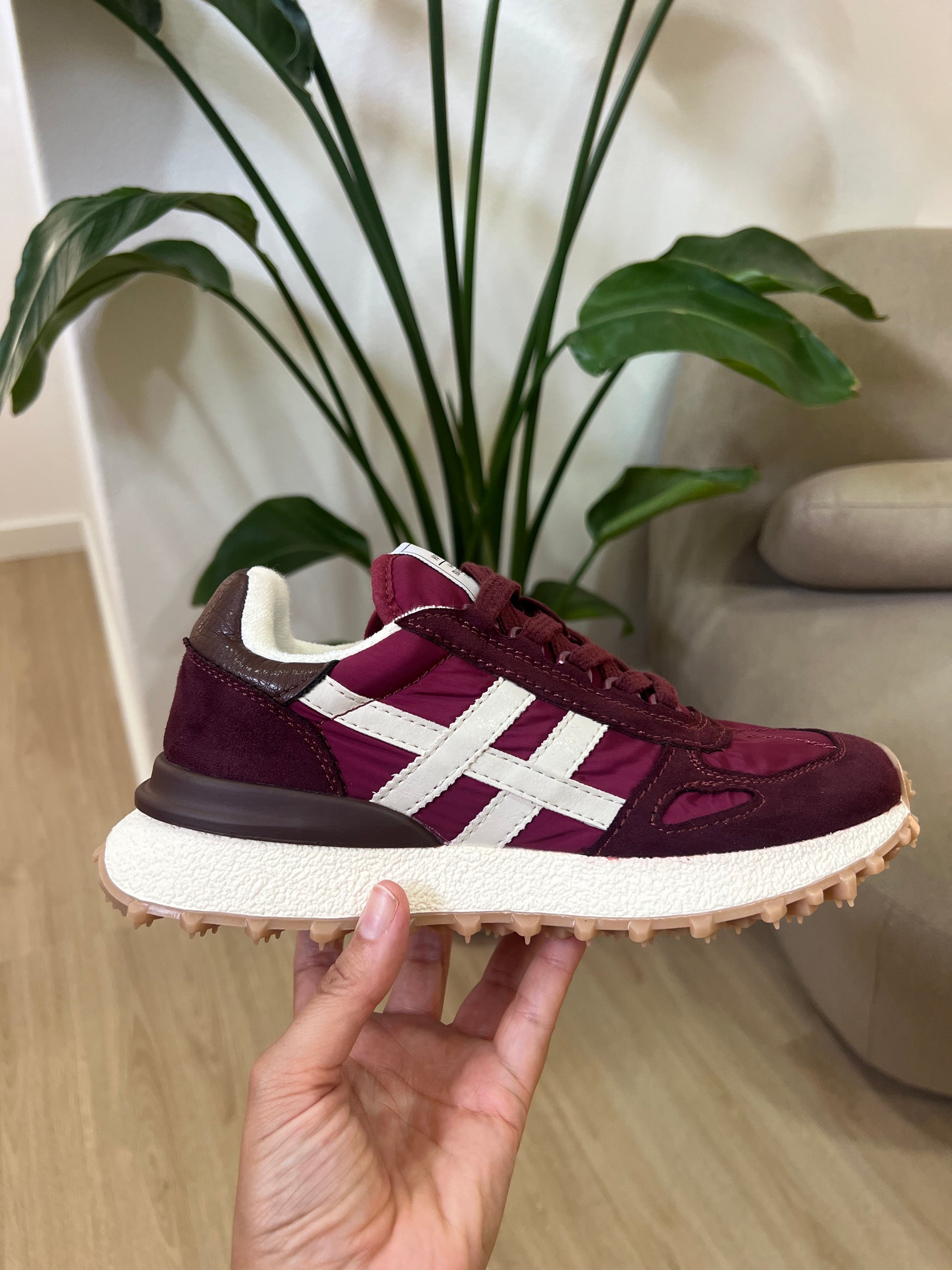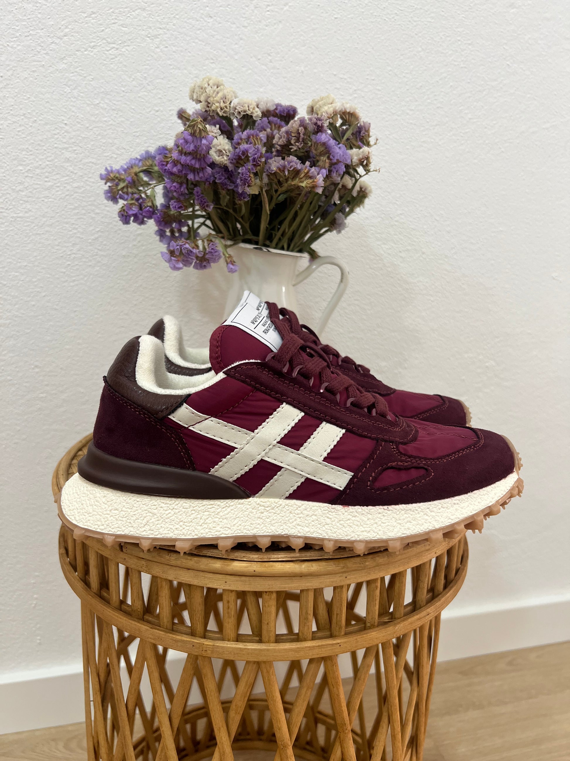 Sapatilha desportiva estilo corrida com palmilha almofadada. Aperta mediante atacadores. Sola serrilhada.